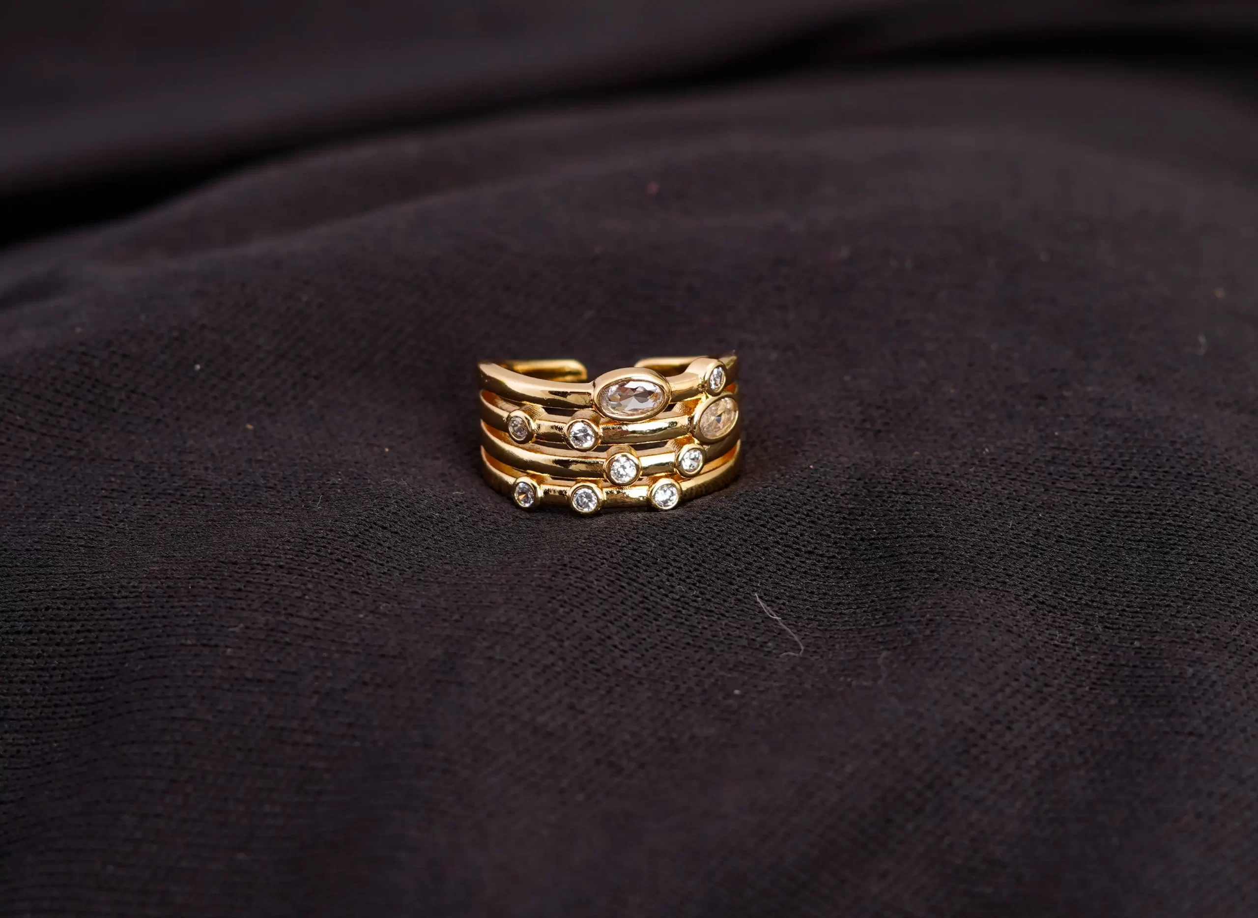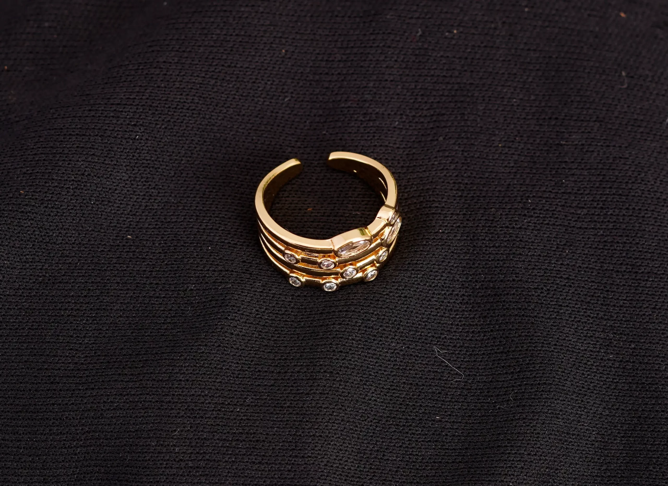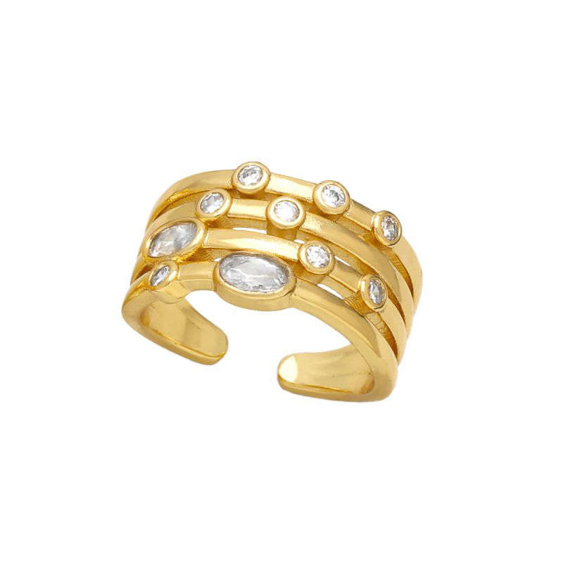 • The gold-plated open ring with white stone studded.