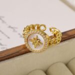 • The link ring is gold-plated with a white base and features a gold star in the center.