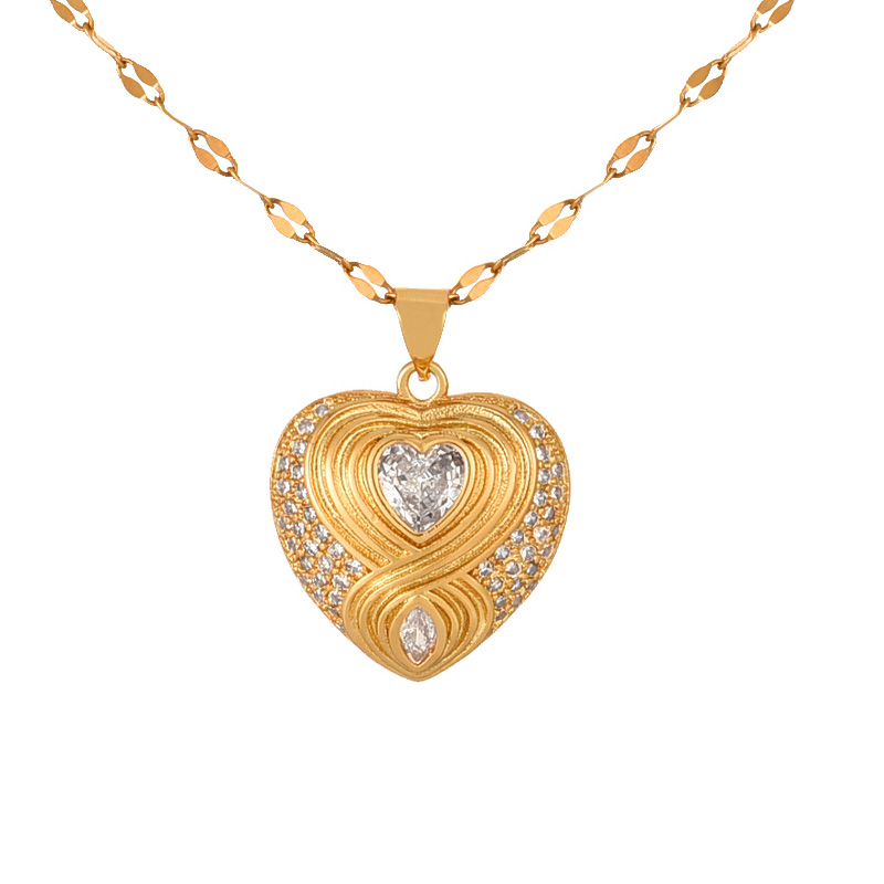 Check out this stunning necklace flaunting a heart pendant bedazzled with diamonds! Made from top-notch Titanium Steel and coated with a lavish 18kt gold vermeil plating, this pendant oozes sophistication. Perfect for the ladies, it’s a showstopper that elevates any look with a touch of class.